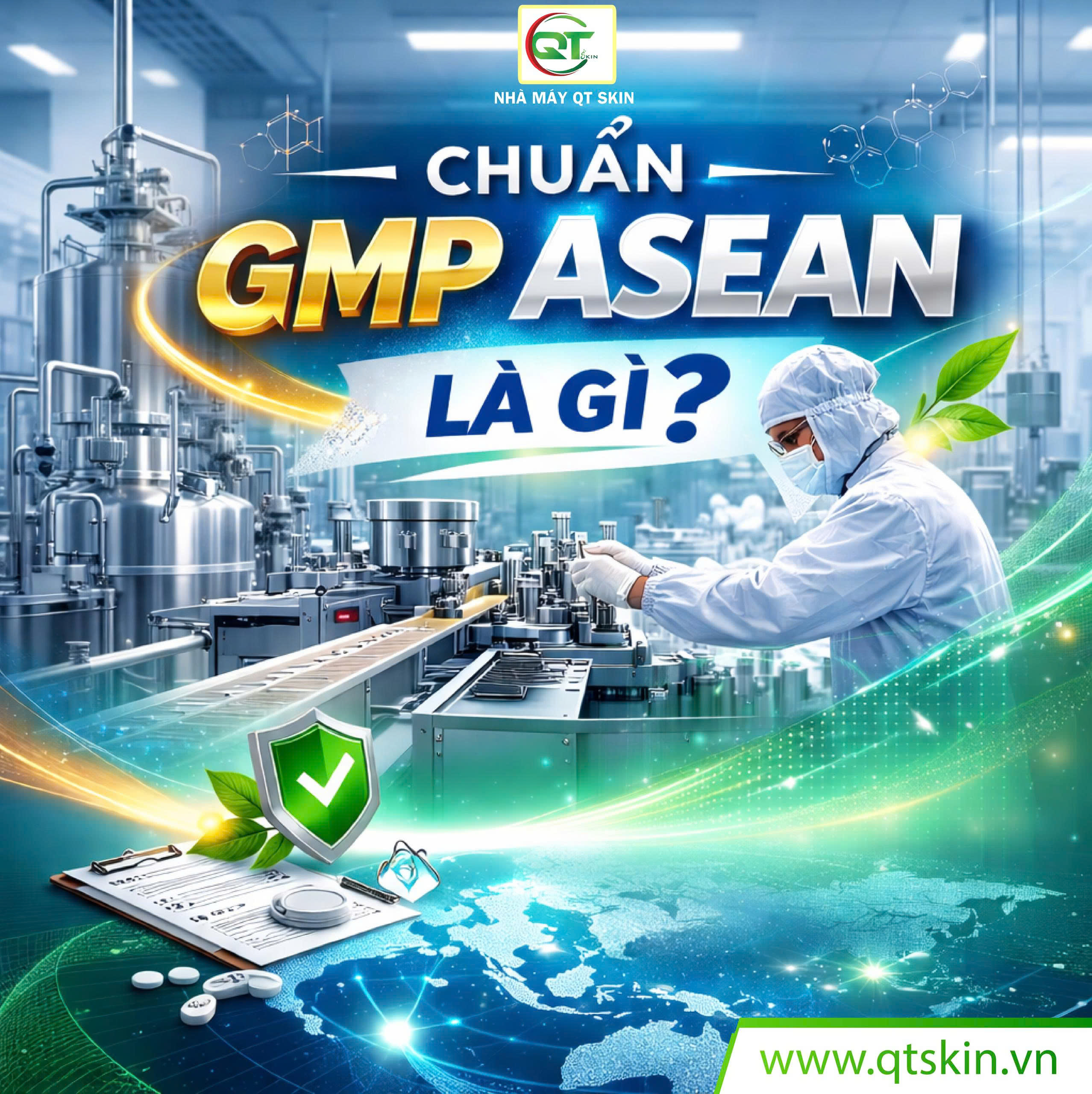 Nhà máy QT Skin được xây dựng và vận hành theo tiêu chuẩn GMP ASEAN với: