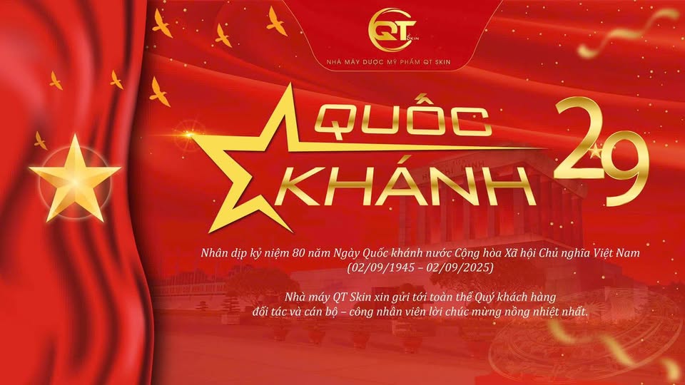 Nhân dịp trọng đại này, Nhà máy Dược Mỹ phẩm QT Skin xin gửi tới toàn thể Quý khách hàng, Quý đối tác, cùng toàn thể cán bộ – công nhân viên lời chúc sức khỏe, hạnh phúc và thành công.